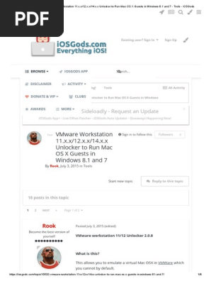 Hello, in this video i show you how to fix the vmware unlocker to install mac os x (part 1). What's new in version 2.0.9 (unofficial). Read below if you have older versions. Unlocker for vmware workstation 10, 9, 8 and 7. 0.8 but on git there is a 2.0.9: